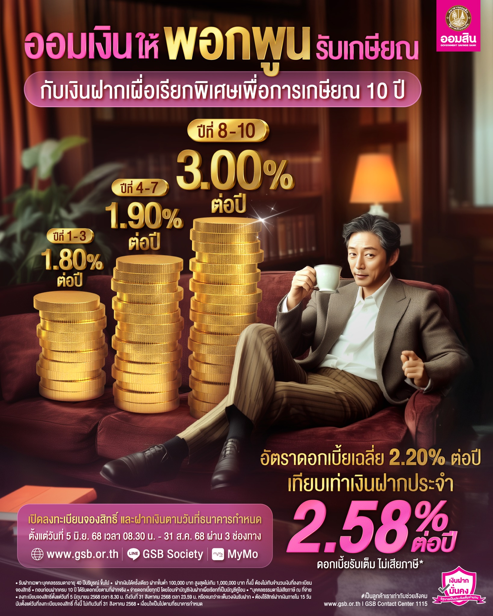 ออมสิน เปิดลงทะเบียนวันนี้ เงินฝากเผื่อเรียกเกษียณ 10 ปี ดอกสูงสุด 3%