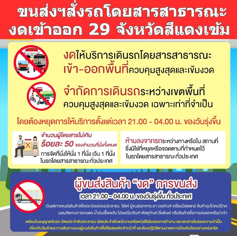 ขนส่งฯ สั่งรถโดยสาร งดเข้าออกพื้นที่แดงเข้ม 29 จังหวัด