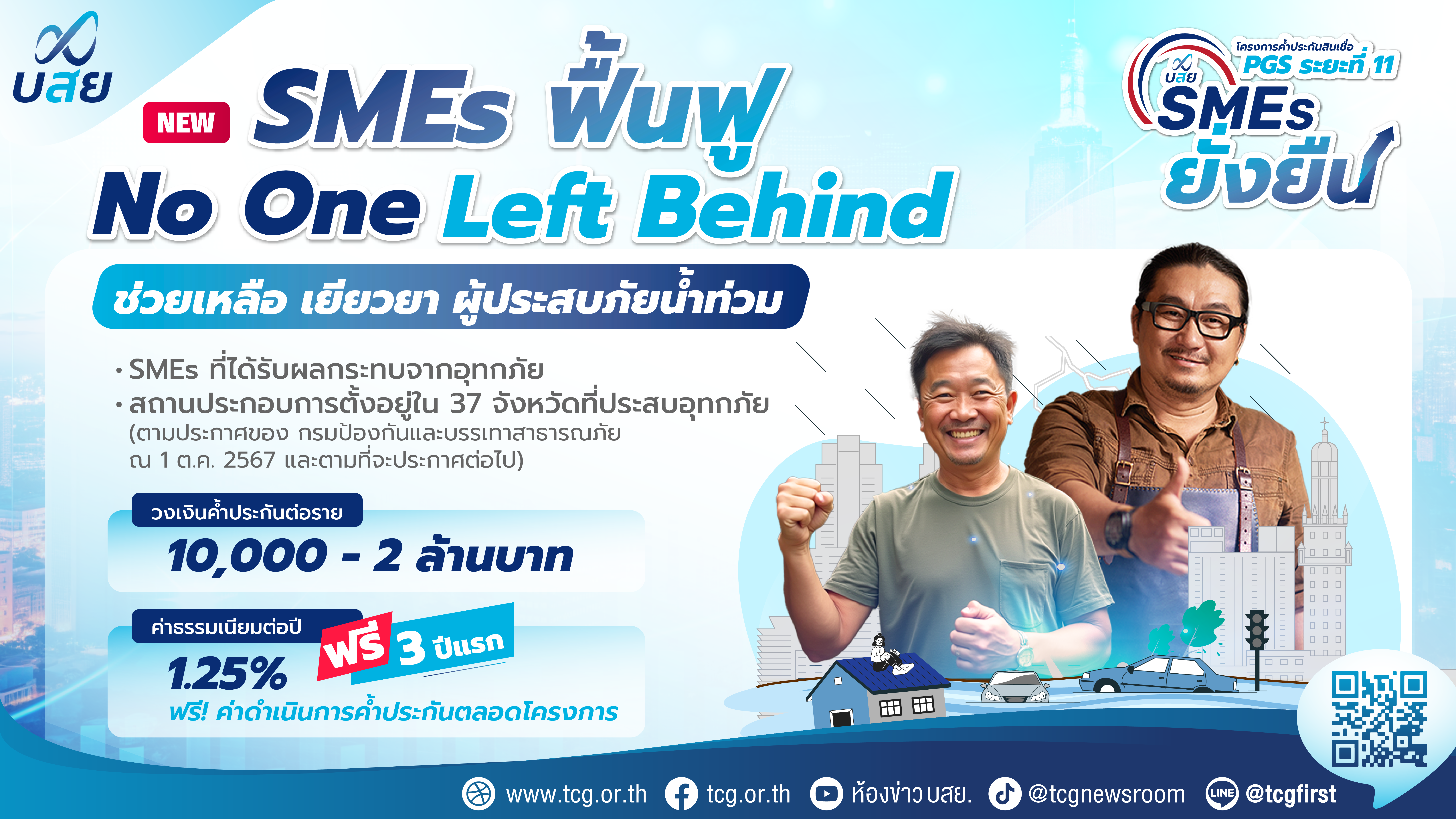 โครงการค้ำประกันสินเชื่อเพื่อช่วยเหลือผู้ประกอบการ SMEs ที่ได้รับผลกระทบจากเหตุอุทกภัยปี 2567 ภายใต้โครงการ PGS 11 ของบรรษัทประกันสินเชื่ออุตสาหกรรมขนาดย่อม (บสย.)