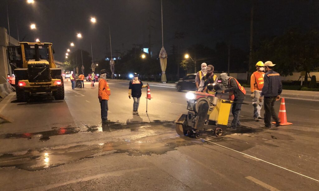 - จุดที่ 3 บริเวณใต้สถานีดอนเมืองตลอดแนว ระยะทาง 800 เมตร มี 4 ช่องจราจร ใช้ระยะเวลาซ่อมบำรุง 7 วัน ตั้งแต่วันที่ 10 – 16 มี.ค. 65 จะซ่อมแซมผิวจราจรตามช่องจราจรเฉพาะจุดที่ปูดนูนและเป็นลูกคลื่น ให้เรียบตลอดแนวและเปิดผิวจราจร แอสฟัลต์ (Asphalt) ด้านที่ติดกับเกาะกลางฝั่งสน.ดอนเมือง เพื่อทำการปรับชั้นทางตลอดแนวเกาะกลาง