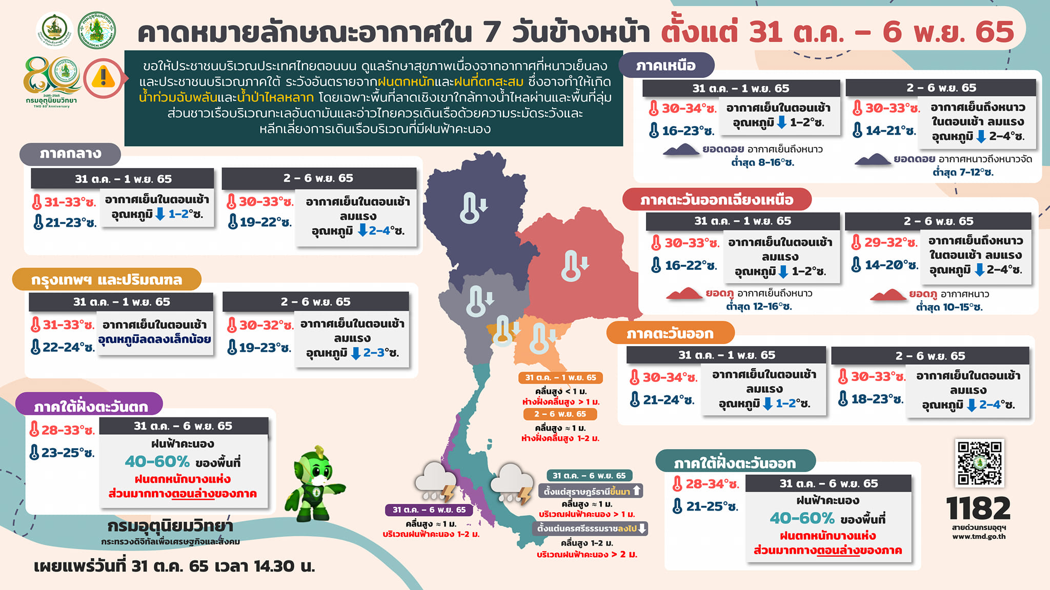 สำหรับพยากรณ์อากาศรายภูมิภาค วันที่ 31 ตุลาคม – 6 พฤศจิกายน 2565