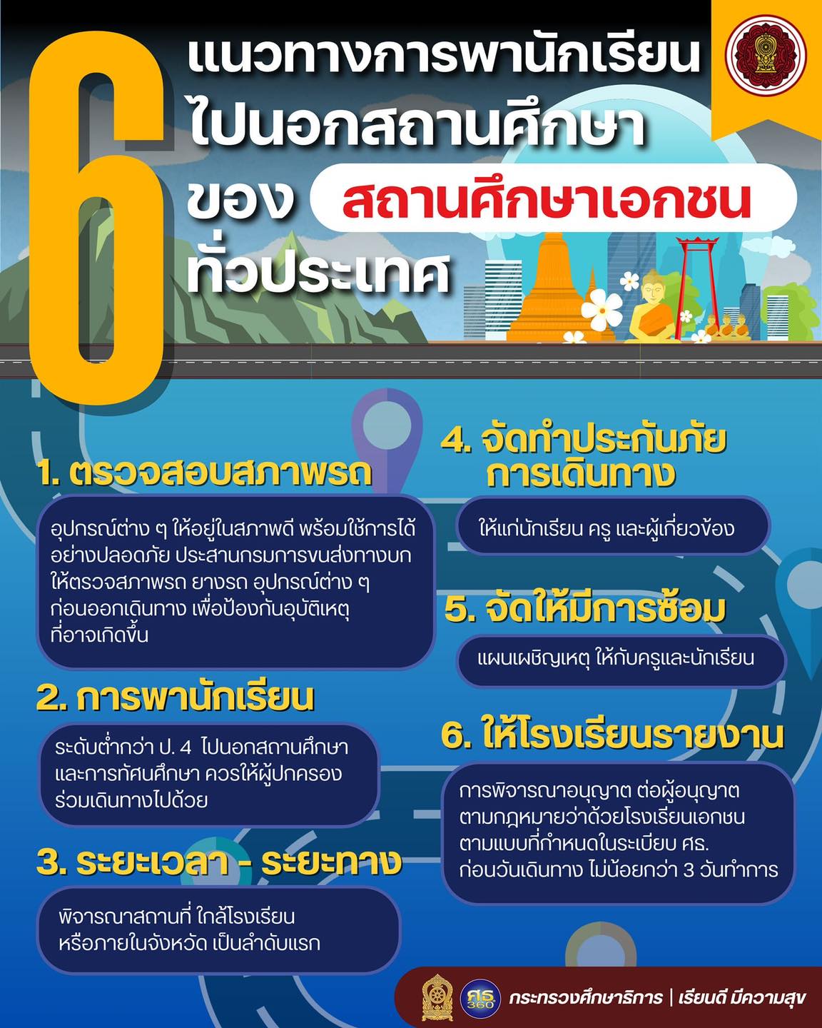 สรุป แนวทางการพานักเรียนไปทัศนศึกษานอกสถานที่ ของโรงเรียนเอกชน 6 แนวทาง และโรงเรียนสังกัด สพฐ อีก 16 แนวทาง