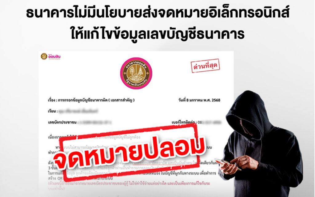 ออมสินเตือนภัย มุขใหม่มิจฉาชีพ ปลอมเอกสารเหมือนธนาคารส่งเป็นจดหมาย ย้ำ! ต้องเช็คธนาคารทุกครั้งว่าจริงหรือมั่ว ก่อนสูญเงินหมดตัว