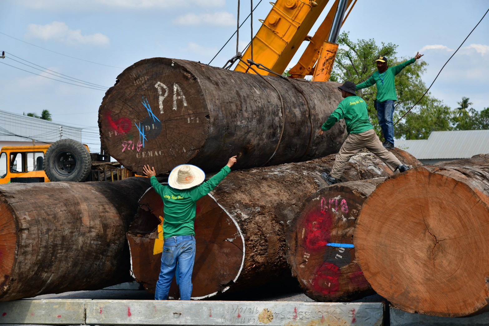 ภายหลังจากทำพิธีรับมอบไม้ซุงแล้ว คุณกิติชัย เจียมวุฒิสกุล และ คุณวรัทยา ธีธัชนนท์ ผู้บริหารจากบริษัท อะเมซิ่ง เนเชอร์ วู๊ดส์ จำกัด พร้อมด้วยทีมงานผู้เชี่ยวชาญด้านการเคลื่อนย้ายไม้ขนาดใหญ่ ได้ใช้รถเครนชนิดพิเศษที่มีวินลากไม้ ส่งผลให้การลงไม้ทั้ง 26 ท่อนเสร็จสิ้นได้รวดเร็วกว่ากำหนดถึง 1 วันเต็ม