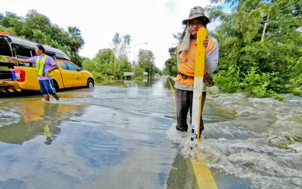 เช็กก่อนเดินทาง ทางหลวงอ่วม ท่วมหนัก 76 สายทาง 104 แห่ง ปักป้ายเตือน การจราจรผ่านไม่ได้ 13 แห่ง ในพื้นที่ 7 จังหวัด