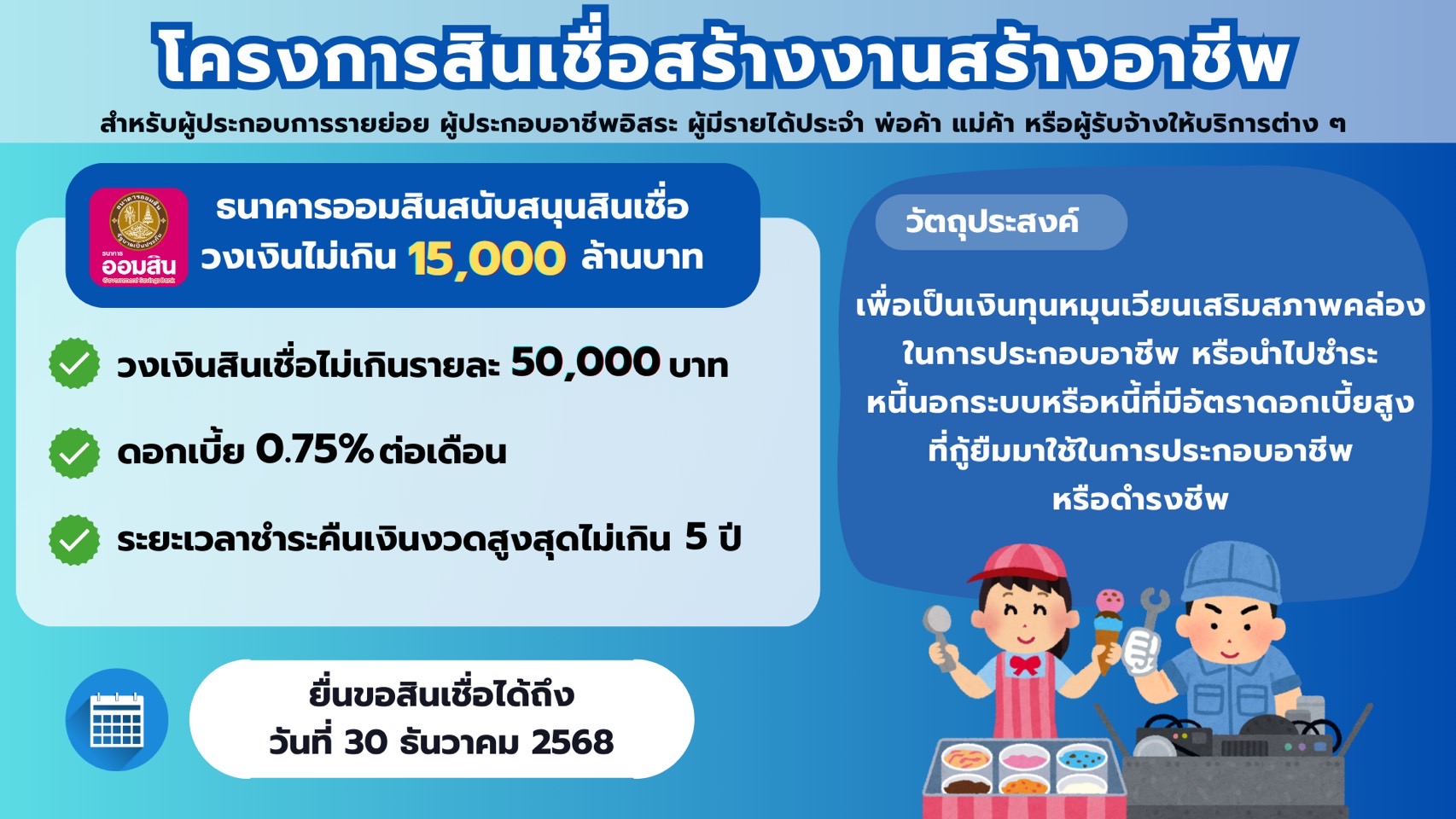 โครงการสินเชื่อสร้างงานสร้างอาชีพ โดยธนาคารออมสินสนับสนุนสินเชื่อให้แก่ผู้ประกอบการรายย่อย