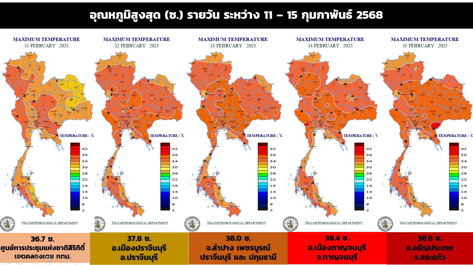 ผู้สื่อข่าวรายงานว่า กรมอุตุนิยมวิทยา พยากรณ์สภาพอากาศ 7 วันล่วงหน้า ระหว่างวันที่ 16 – 22 กุมภาพันธ์ พ.ศ. 2568 โดยระบุว่าช่วงวันที่ 17 – 22 ก.พ. บริเวณความกดอากาศสูงหรือมวลอากาศเย็นกำลังปานกลางจากประเทศจีนจะแผ่ลงมาปกคลุมภาคตะวันออกเฉียงเหนือ และทะเลจีนใต้ ส่งผลทำให้มีลมใต้และลมตะวันออกเฉียงใต้พัดนำความชื้นจากทะเลจีนใต้และอ่าวไทยเข้ามาปกคลุมประเทศไทยตอนบน ขณะที่ประเทศไทยมีอากาศร้อนในตอนกลางวัน