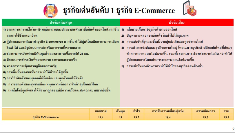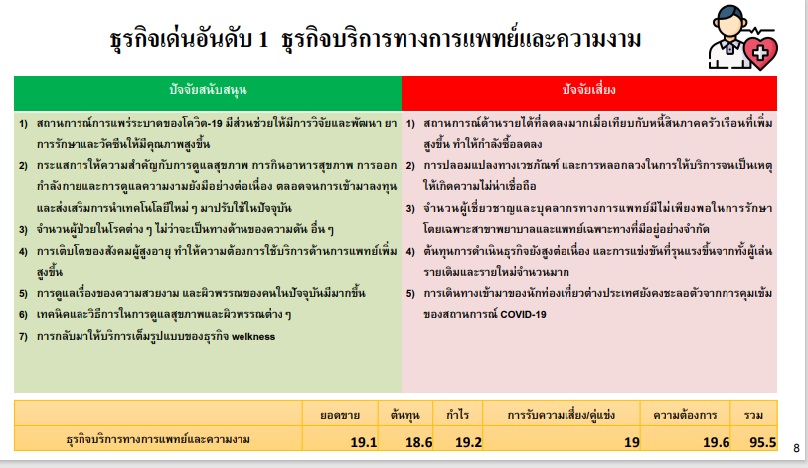 - ธุรกิจการแพทย์และความงาม และธุรกิจอีคอมเมิร์ซ (ธุรกิจที่ทำการซื้อขายผ่านอิเล็กทรอนิกส์)