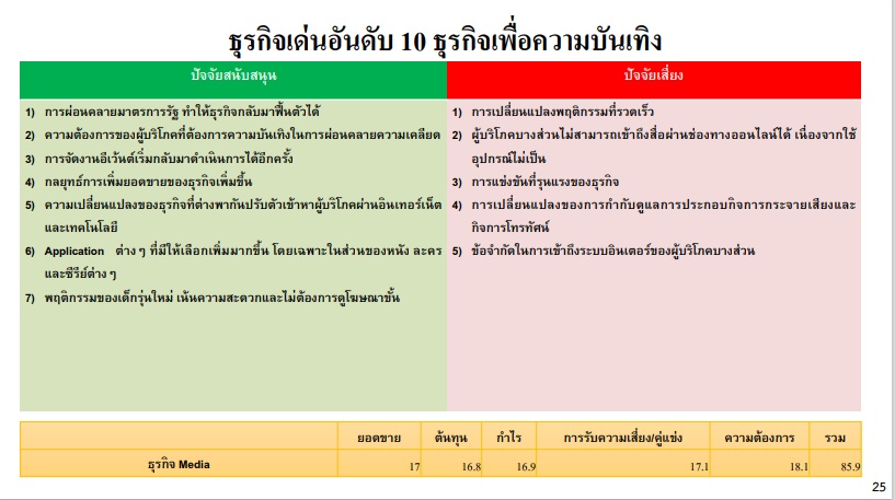 - ธุรกิจบันเทิง ธุรกิจยานยนต์ ธุรกิจก่อสร้างและอสังหาริมทรัพย์แนวราบ ธุรกิจท่องเที่ยว และบริการต่อเนื่อง