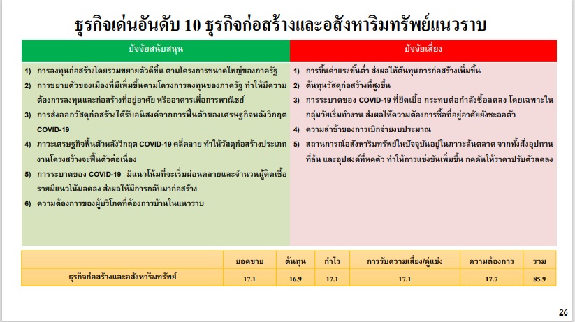 ศูนย์พยากรณ์เศรษฐกิจและธุรกิจ มหาวิทยาลัยหอการค้าไทย และหอการค้าไทย ได้ทำการสำรวจและประเมินโอกาสและแนวโน้มการทำธุรกิจ ที่ทำแล้วมีสิทธิรุ่งโรจน์ ปี 2565 ซึ่ง 10 อันดับธุรกิจดาวเด่น ดังนี้