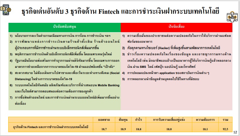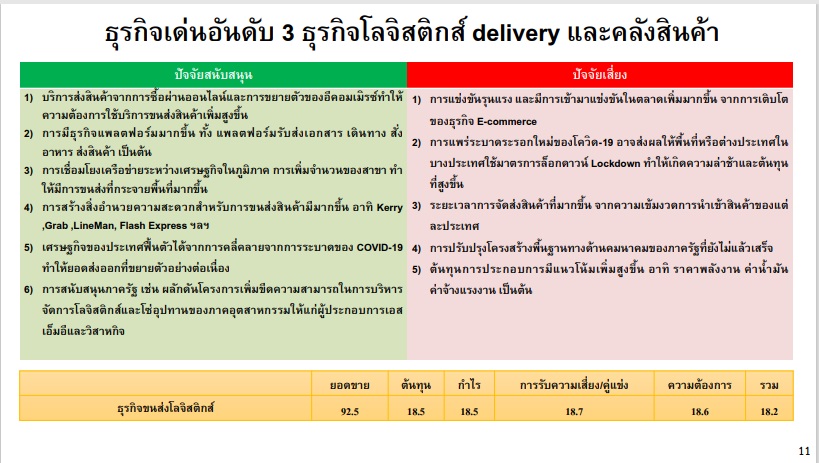 - ธุรกิจโลจิสติกส์ ดีลิเวอรี่ และคลังสินค้า ธุรกิจด้านฟินเทค และการชำระเงินผ่านระบบเทคโนโลยี