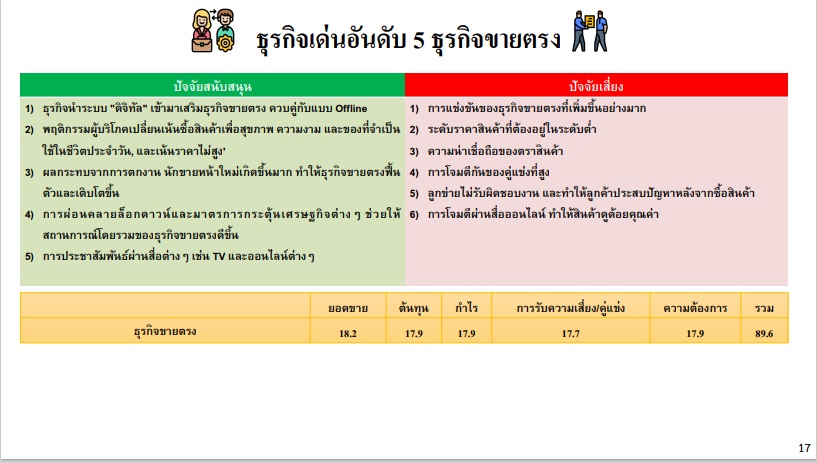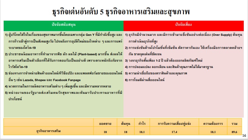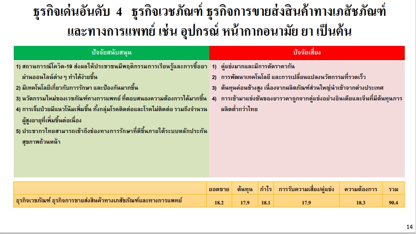 - ธุรกิจเกี่ยวกับเครื่องมือแพทย์ ธุรกิจอาหารเสริมและสุขภาพ ธุรกิจขายตรง