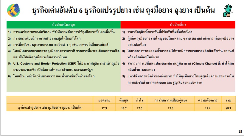 - ธุรกิจแปรรูปยาง เช่น ถุงมือยาง ถุงยาง เป็นต้น ธุรกิจอาหารสำเร็จรูป