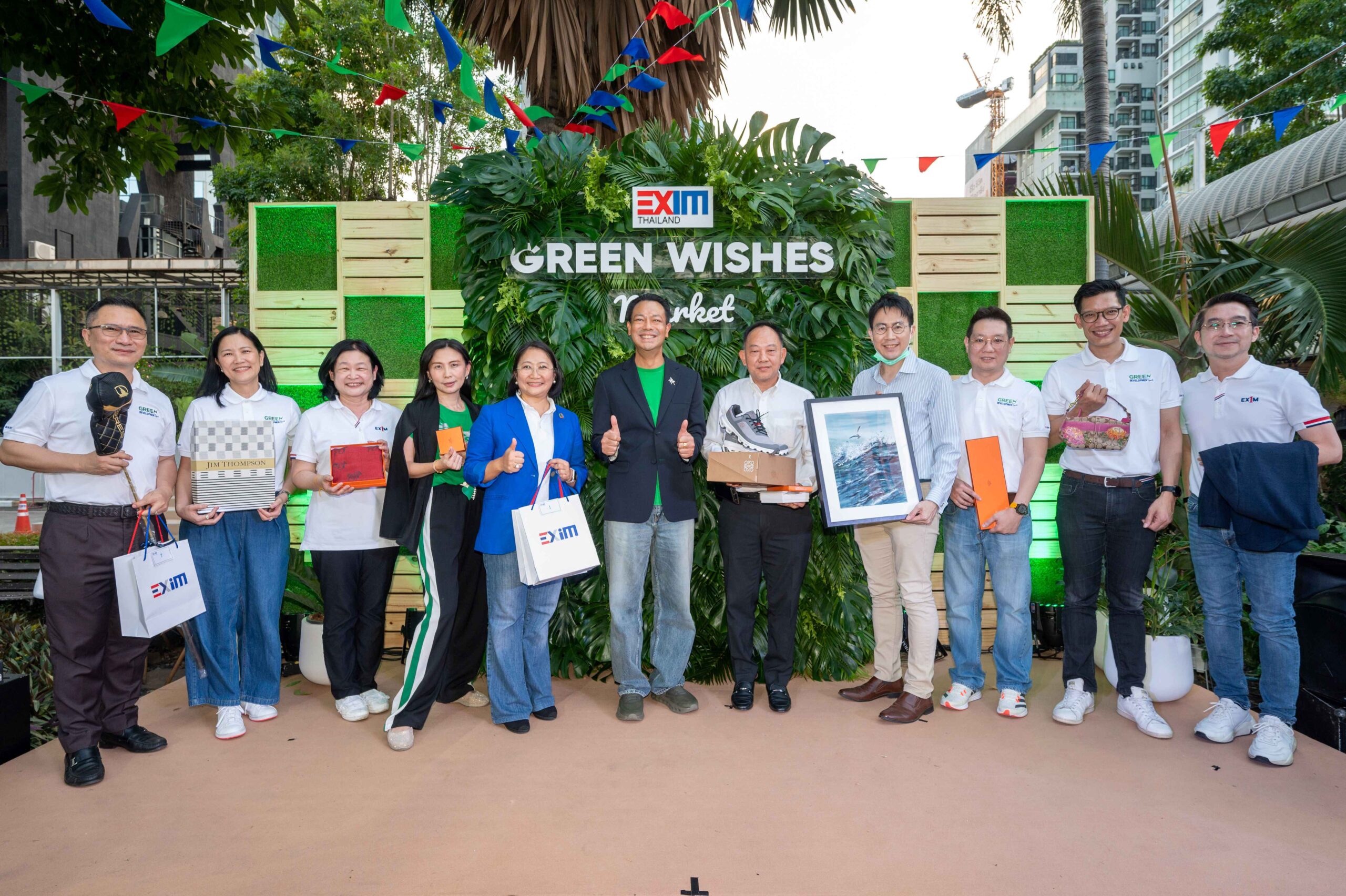 EXIM BANK ได้จัดงาน “EXIM Green Wishes Market” ณ EXIM BANK สำนักงานใหญ่ เมื่อวันที่ 20 ธันวาคม 2566 ที่ผ่านมา เพื่อส่งความสุขในโอกาสต้อนรับปีใหม่ 2567 ให้แก่ลูกค้าธนาคาร โดยเฉพาะ SMEs และกลุ่มเปราะบางในชุมชน ผ่านการออกร้านจำหน่ายสินค้าและกิจกรรมประมูลของรักของหวงของผู้บริหาร EXIM BANK ลูกค้า และหน่วยงานพันธมิตร ส่งต่อรายได้จากการประมูลโดยไม่หักค่าใช้จ่ายให้แก่มูลนิธิรักษ์ไทย ซึ่งมุ่งเน้นการดำเนินโครงการเสริมสร้างความเข้มแข็งของชุมชน การศึกษา ธุรกิจและรายได้ของชุมชนที่ยั่งยืน พร้อมจัดเสวนาในหัวข้อ “Green Wishes” เพื่อแลกเปลี่ยนประสบการณ์และแนวทางการดำเนินธุรกิจอย่างมีความรับผิดชอบต่อสังคมและสิ่งแวดล้อม
